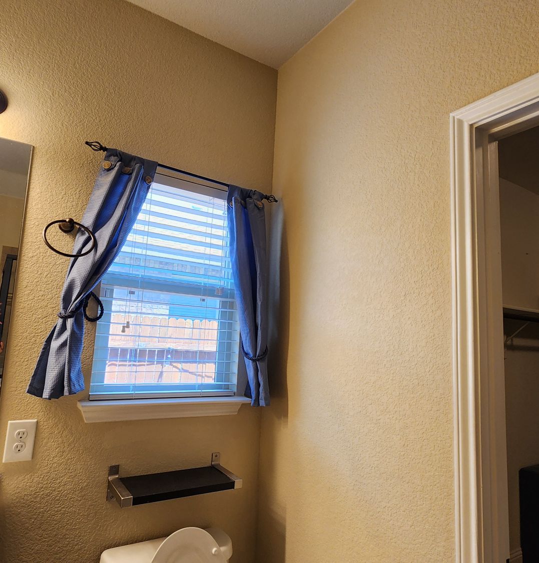 Additional space behind the wall of where the tub/shower is located
